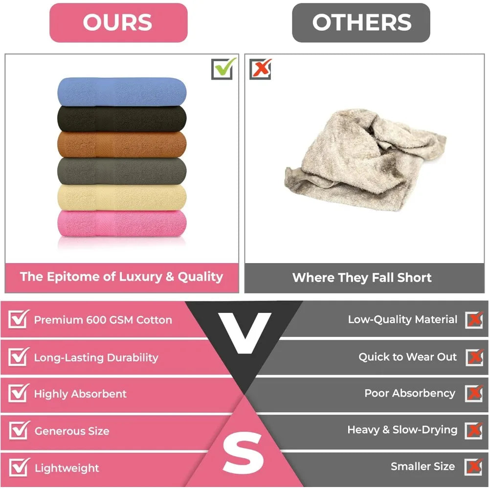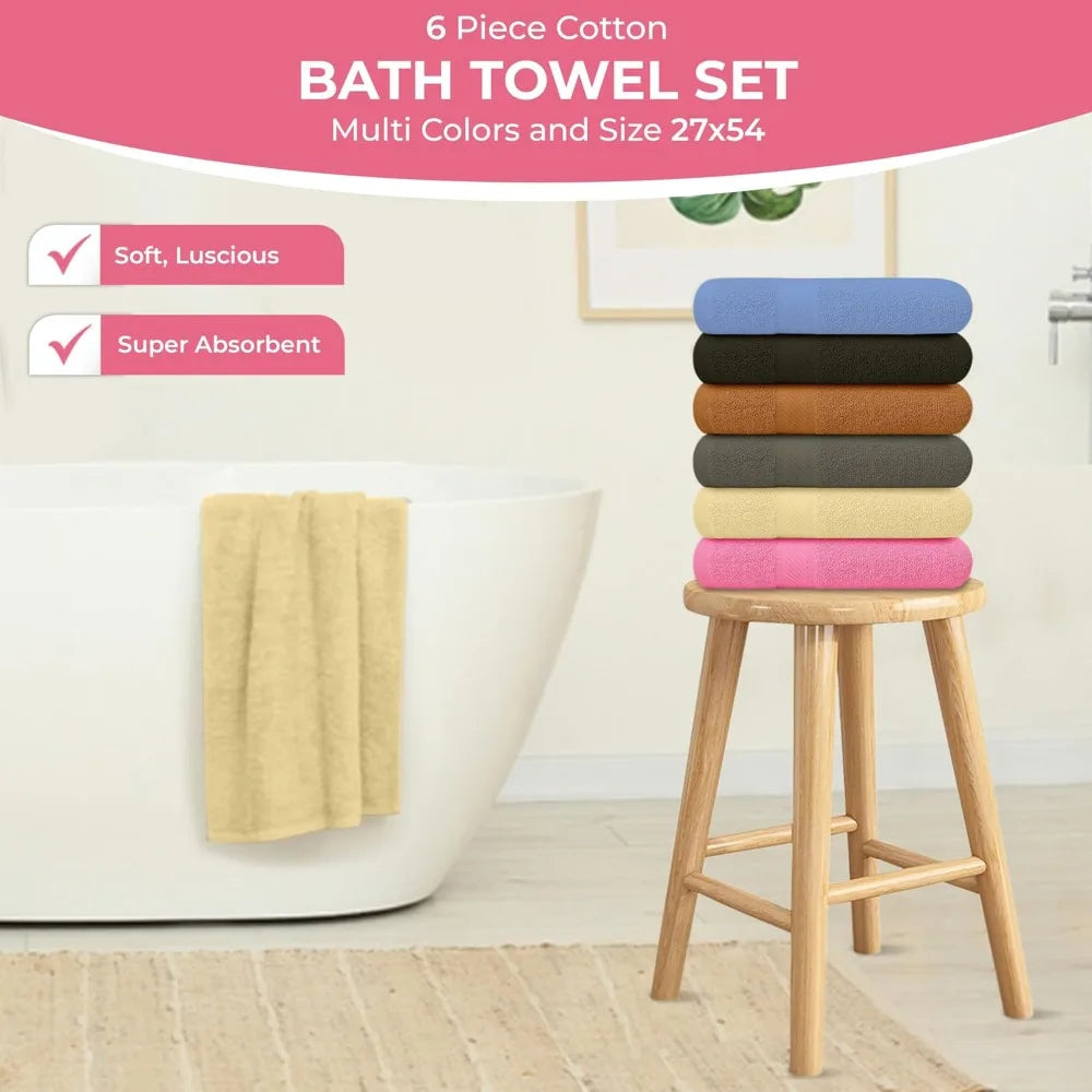 100% Cotton Bath Towels - 27x54 inches - 6-Pack Shower Towels - Lightweight and Super Absorbent Bathroom Towels
