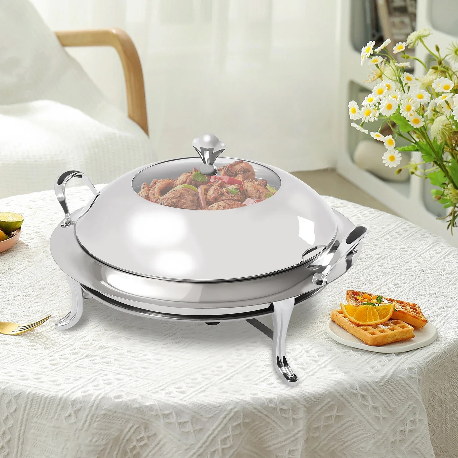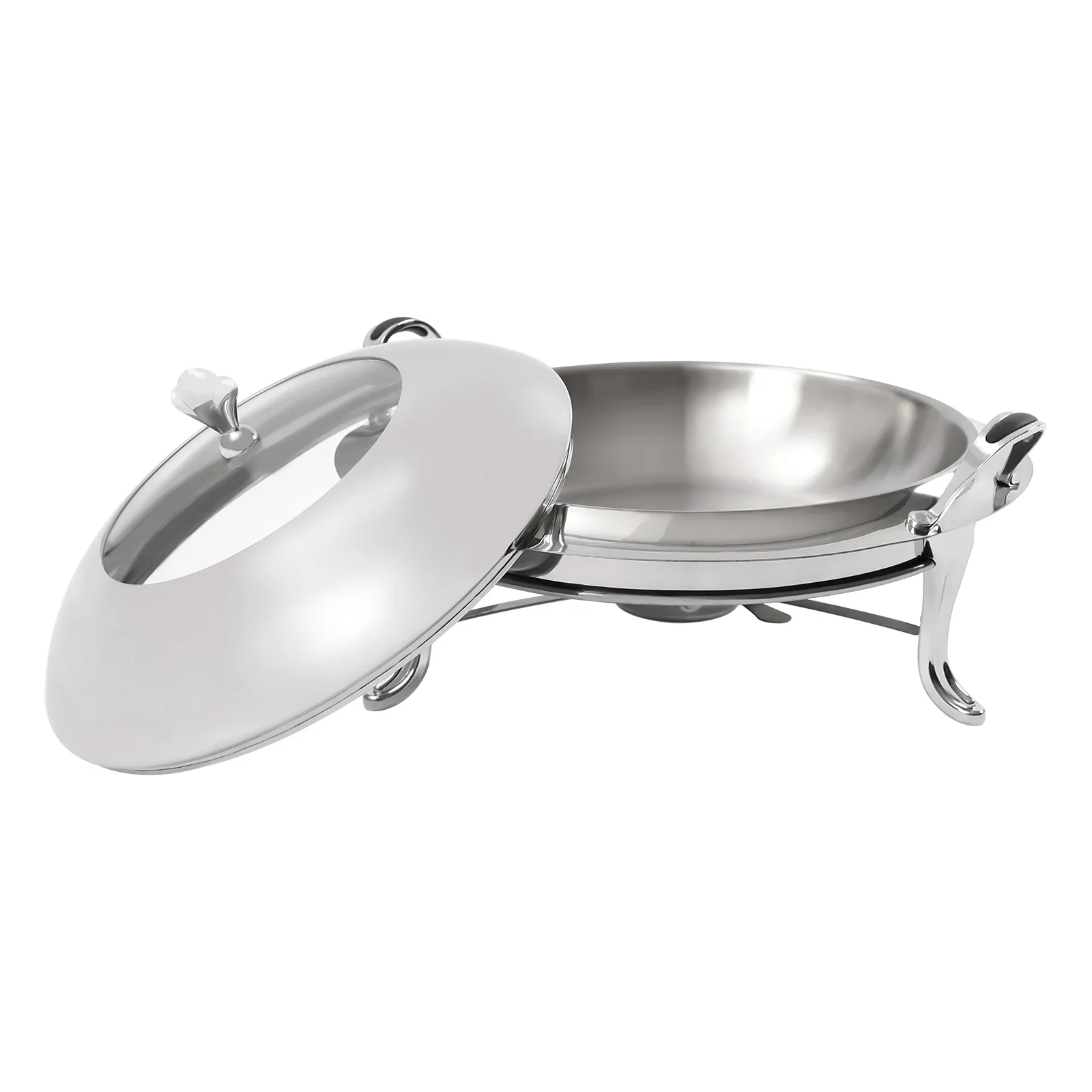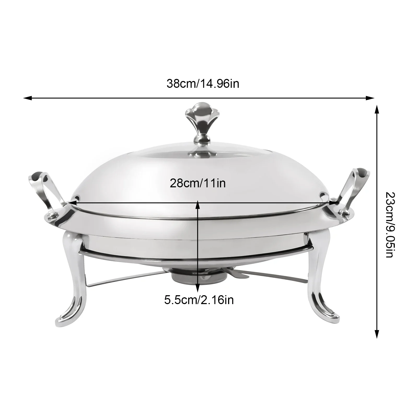 28cm Chafing Dish Stainless Steel Round Durable Buffet Warmer Tray Durable Frame with Lid and Chafing Fuel Holder for Kitchen