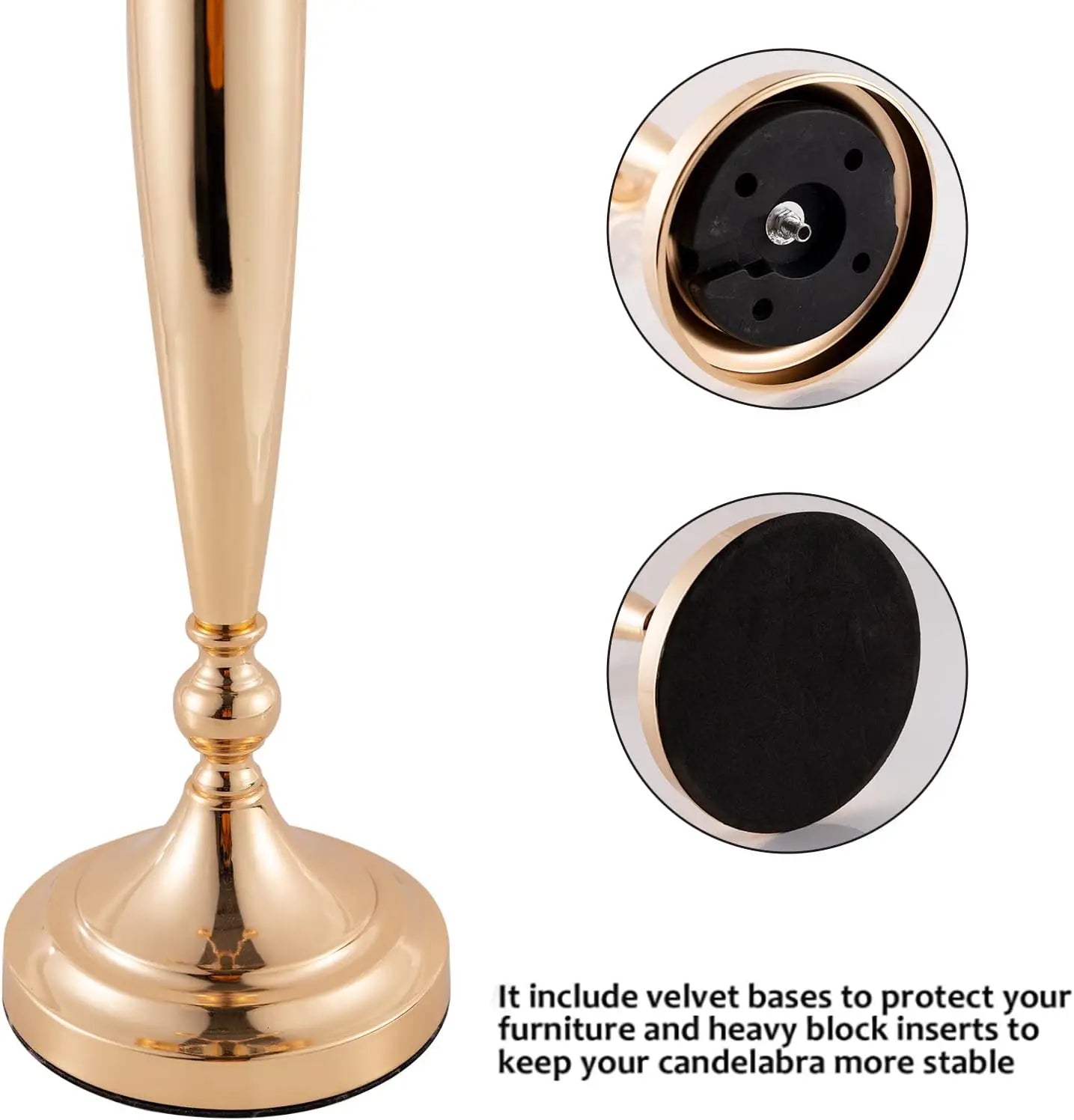 4Pcs 5 Arm Candelabra Candle Holder for Table Centerpieces Gold Metal Candlestick Holder Decorative(28 Inch Tall)