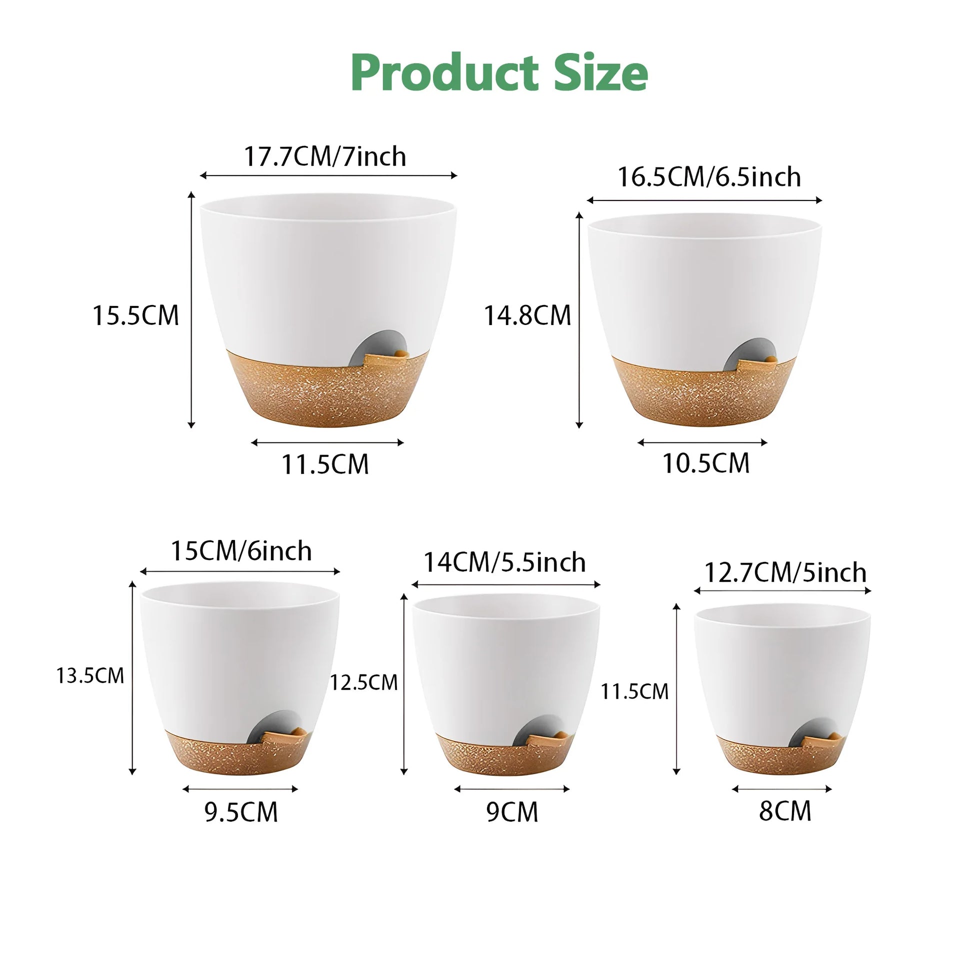5pcs 5/5.5/6/6.5/7in Self Watering Planters, Plant Pots With Drainage Holes And Saucers, Nursery Planting Pot For Indoor