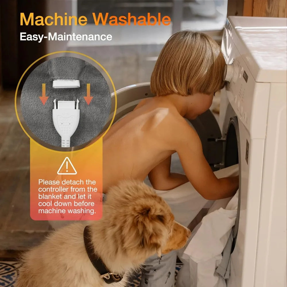- Superior Heating Technology: This 84"x90" queen-size electric blanket features U-shaped heating wires for even heat distribution, guaranteeing comfort. The fast heating technology provides instant warmth, perfect for chilly days