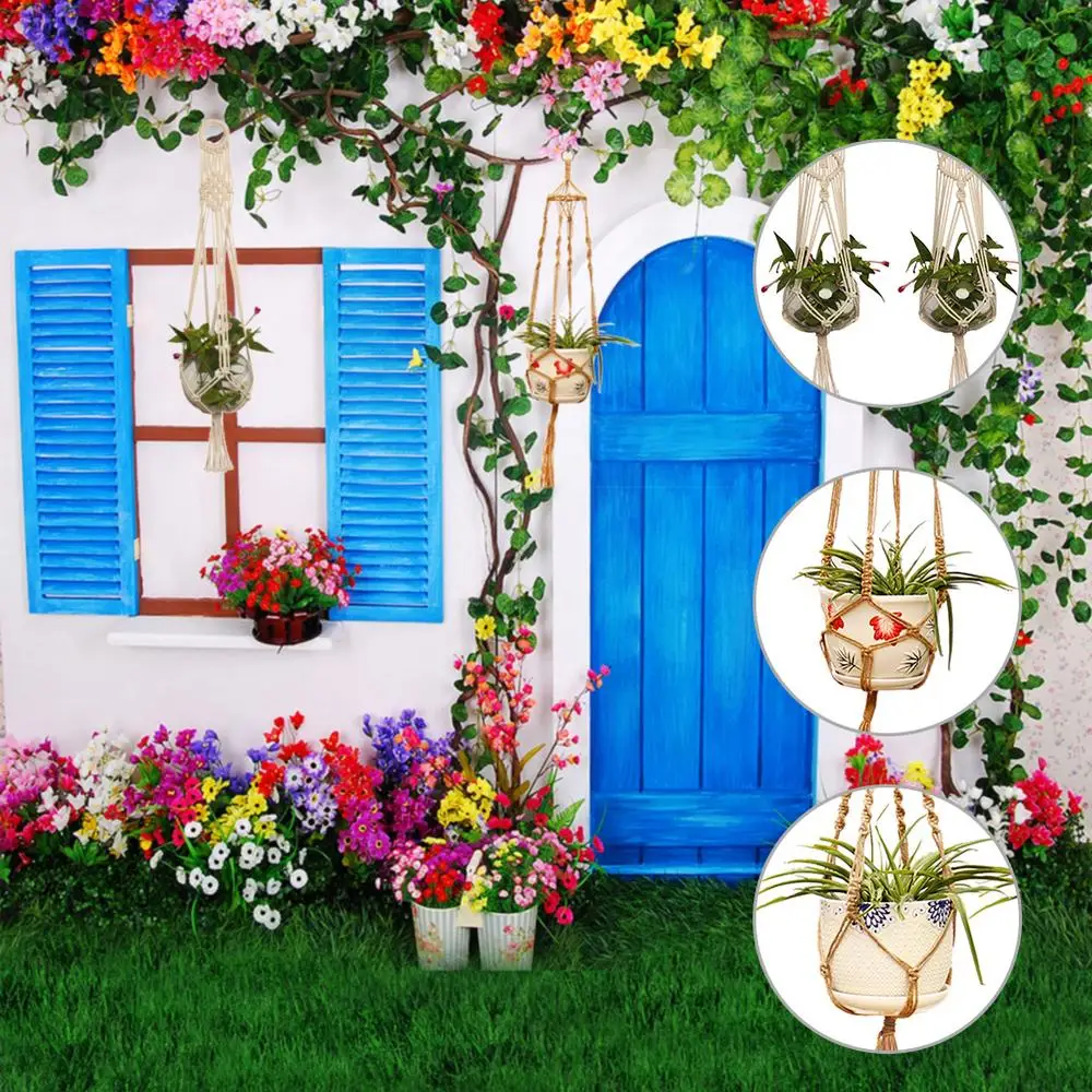 Handmade Macrame Plant Hanger Flower Pot Hanger Hanging Rope Braided Craft For Wall Decoration Countyard Garden Plant Holder