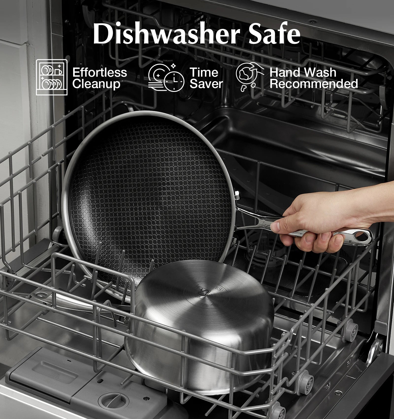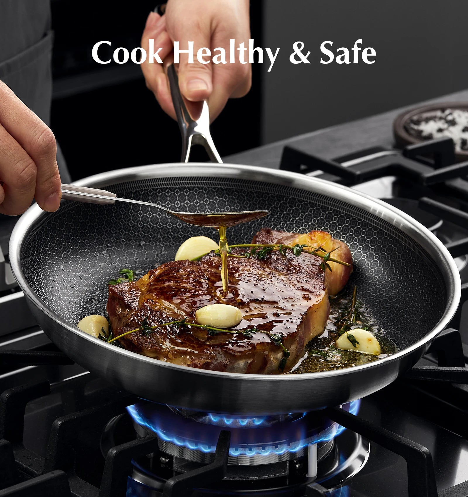 Triple-Layer Stainless Steel, Built to Last – Engineered for durability and even heat distribution, this 10 inch pan’s premium three-layer stainless steel construction ensures long-lasting performance. The non-toxic hybrid honeycomb surface delivers a safe, effortless cooking experience.