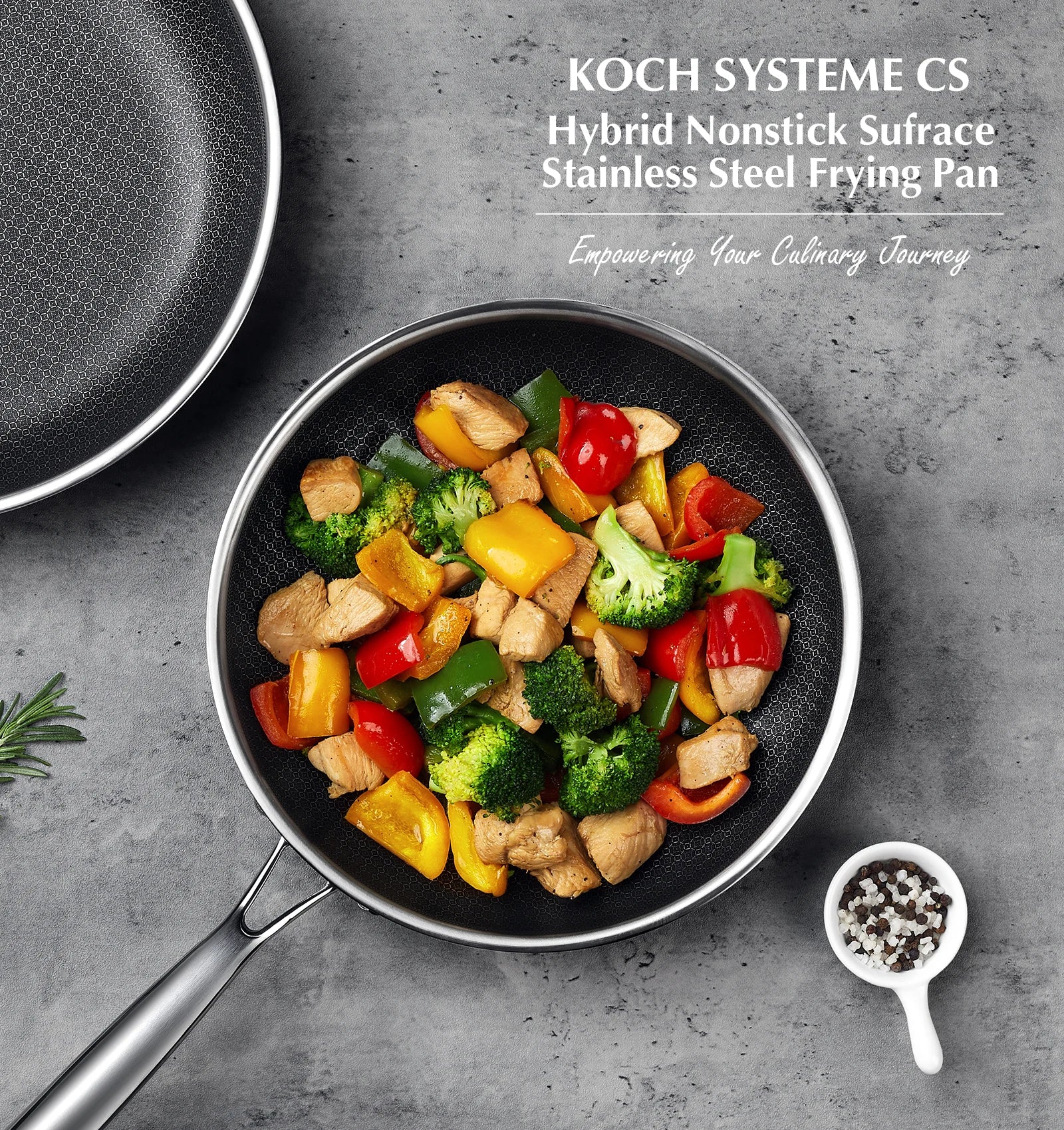 KOCH SYSTEME CS Hybrid Nonstick Stainless Steel Pan, 10 Inch Tri-Ply Stainless Steel Frying Pan with Honeycomb Interior