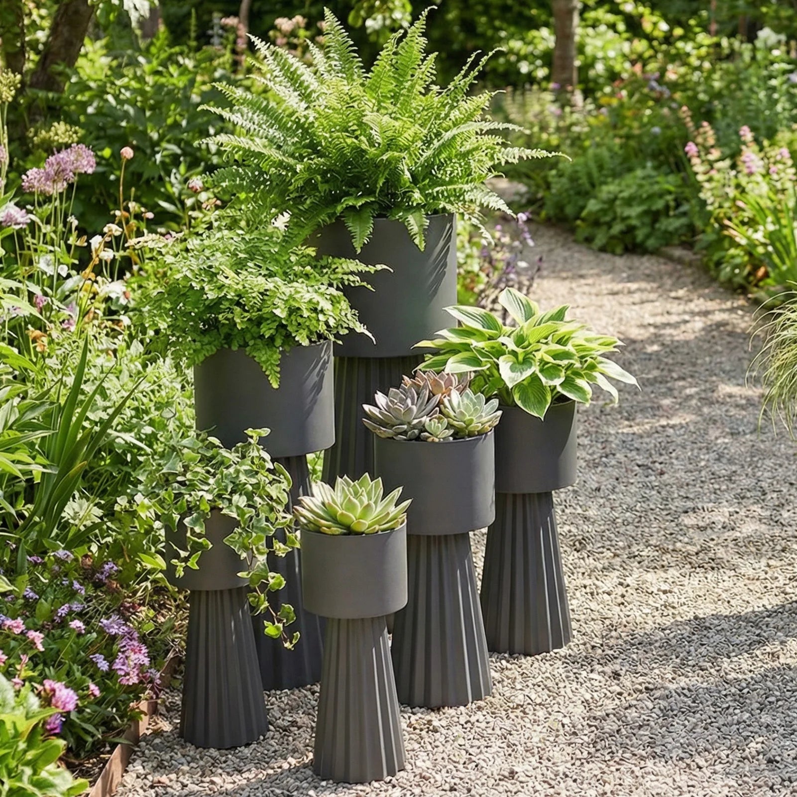 4. METAL PLANT POTS: Plant pots are made from sturdy metal materials, providing a more robust construction compared to plastic plant pots. The lightweight metal frame also makes it easy to set up and move around.