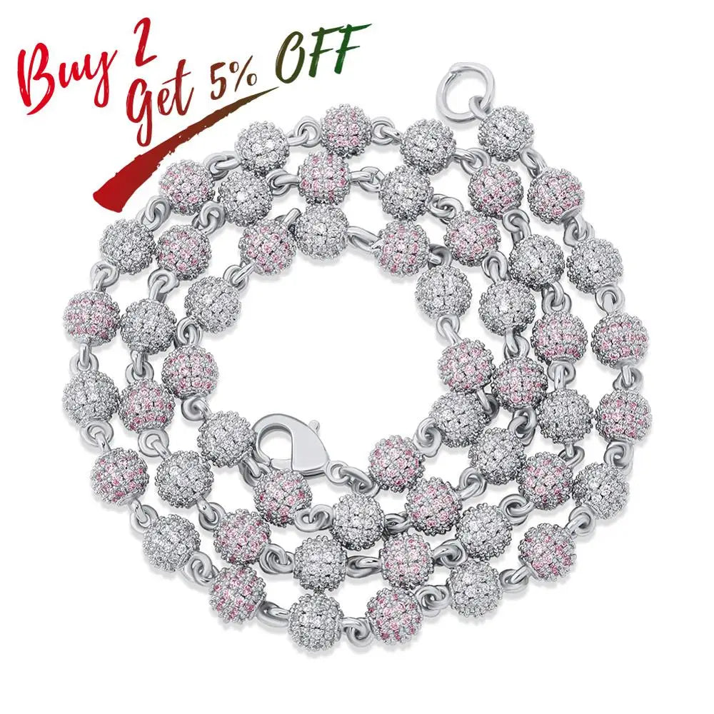 TOPGRILLZ 6mm8mm Iced Ball Chain Choker Necklace Hip Hop Charm Necklace Iced Out Cubic Zirconia Hip Hop Bling Jewelry For Gif
