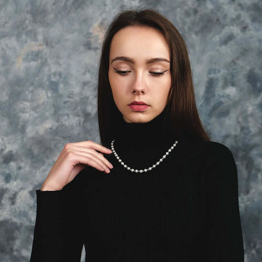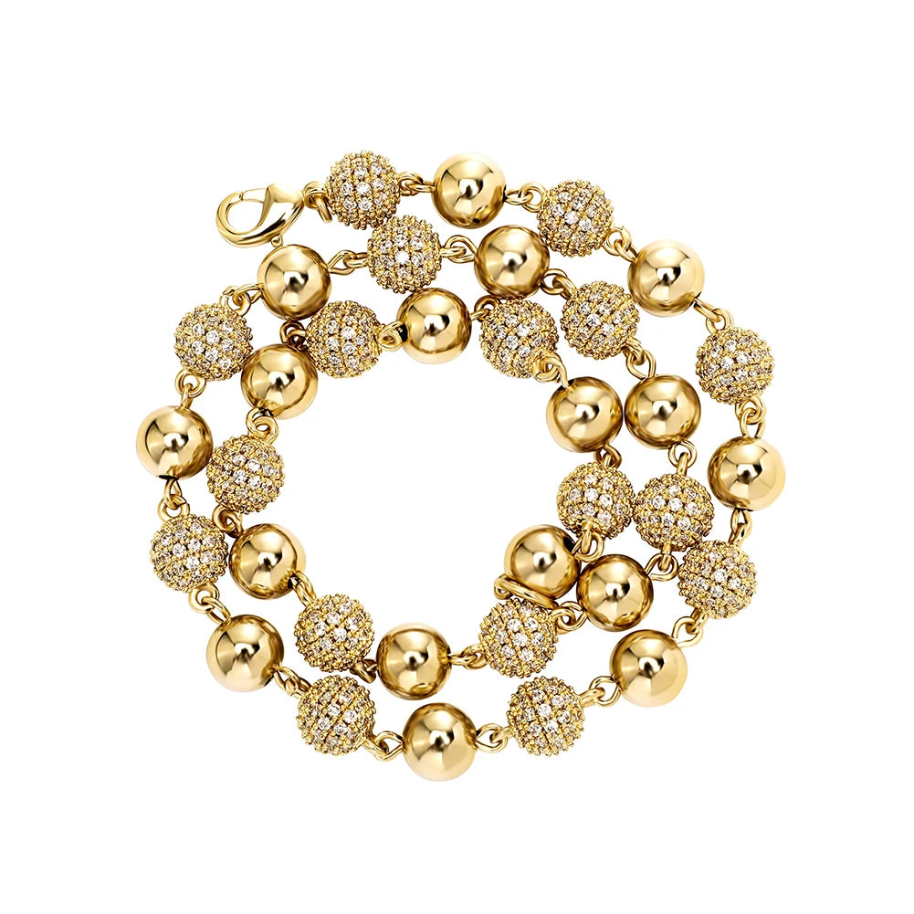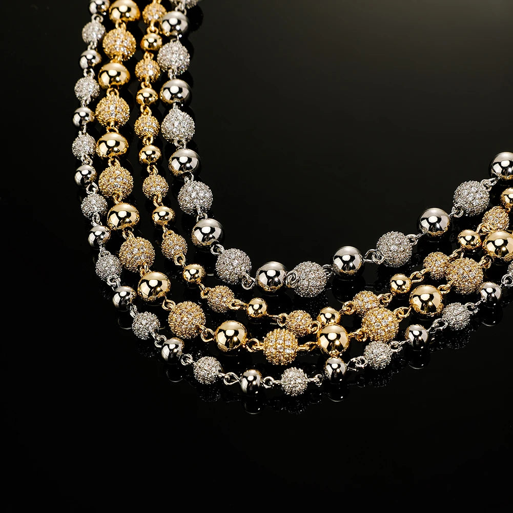 TOPGRILLZ 6mm8mm Iced Ball Chain Choker Necklace Hip Hop Charm Necklace Iced Out Cubic Zirconia Hip Hop Bling Jewelry For Gift
